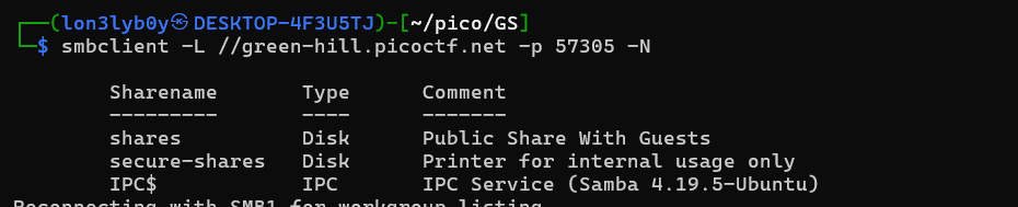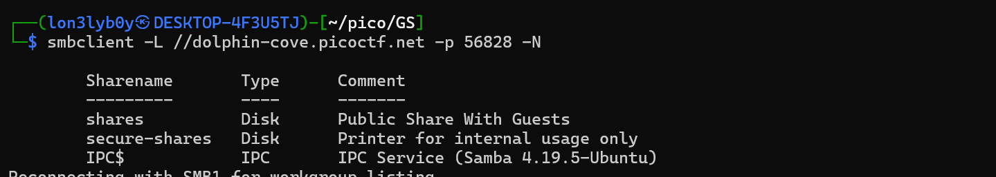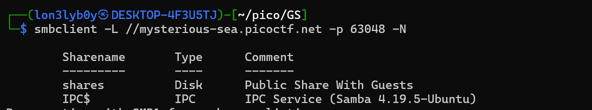 `smbclient -L //mysterious-sea.picoctf.net -p 63048 -N`