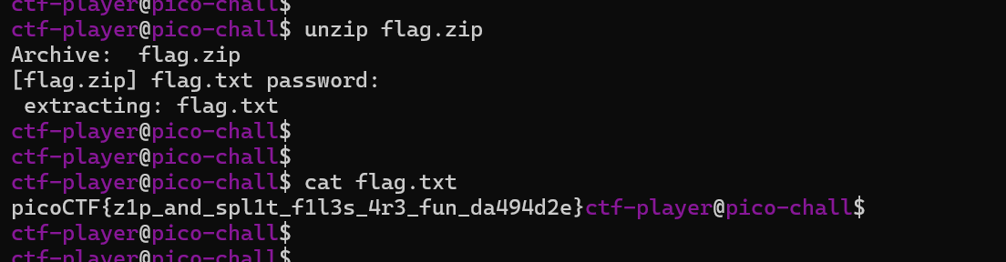 After extraction, a file such as `flag.txt` will appear in the directory.