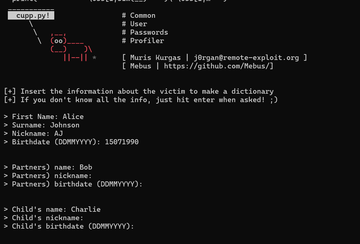 Launch `cupp` in interactive mode: